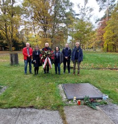 Jedes Jahr am 1. November gedenkt die katholische Kirche der Verstorbenen. An diesem Tag werden die Friedhöfe besucht, um die Toten zu ehren. Wie jedes Jahr legte eine Vertretung der DPGF auf dem Südfriedhof einen Kranz an der Gedenktafel für die Zwangsarbeiter nieder.